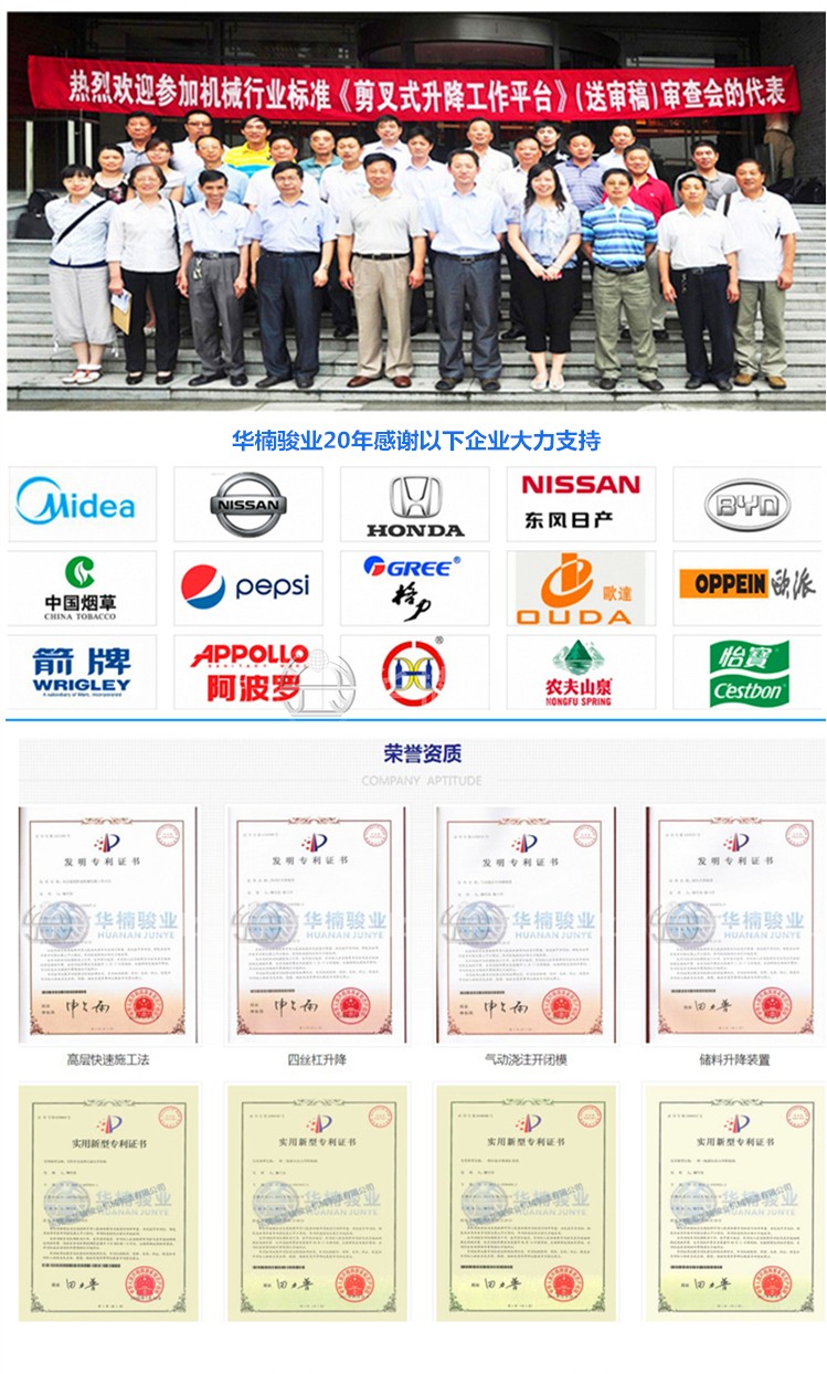 企業(yè) 輸送了高品質(zhì)的液壓升降作業(yè)平臺。為恒大地產(chǎn)、廣州白云國 際會展中心、廣東現(xiàn)代 國際展覽