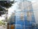 室外雙貨梯并行安裝。雙梯共用整體外圍,PC板封邊,內(nèi)部彩藍(lán)色框架,黃色配重門(mén),貨