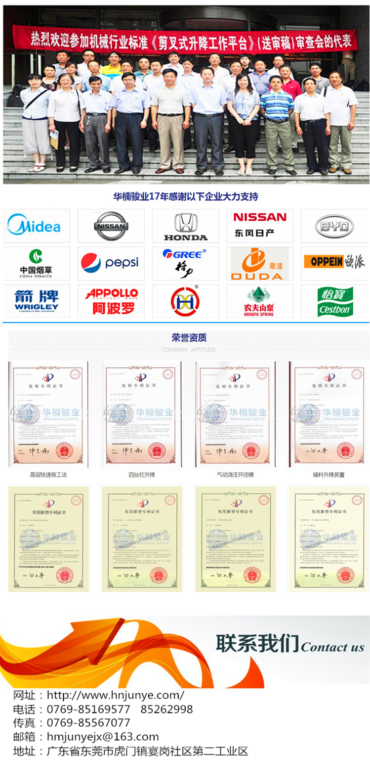知名企業(yè)輸送了高品質(zhì)的液壓升降作業(yè)平臺。為恒大地產(chǎn)、廣州白云國 際會展中心、廣東現(xiàn)代國際